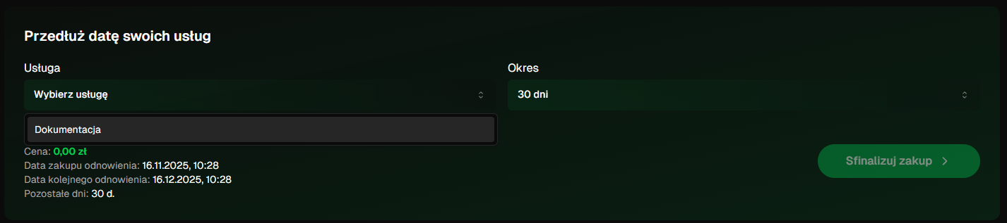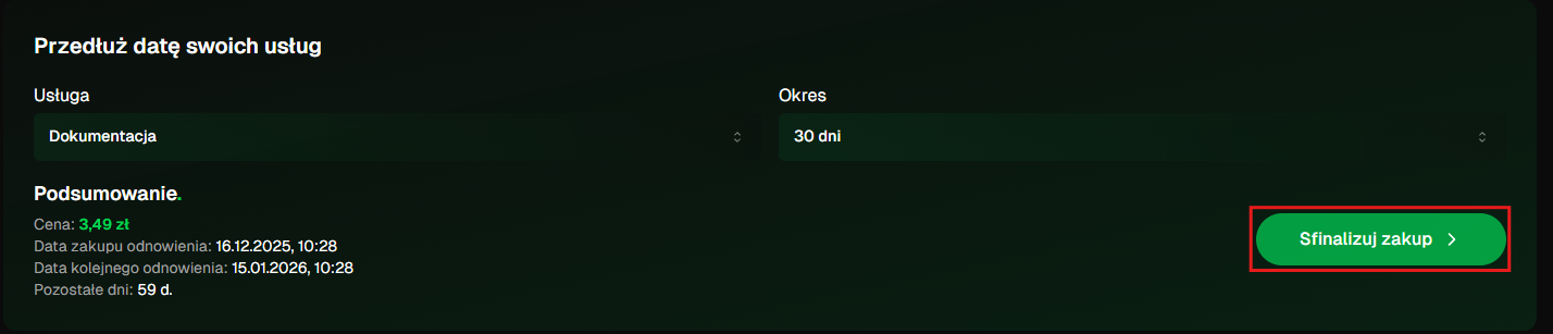 W panelu przejdź do sekcji „Przedłuż datę swoich usług” i wybierz usługę, którą chcesz przedłużyć.